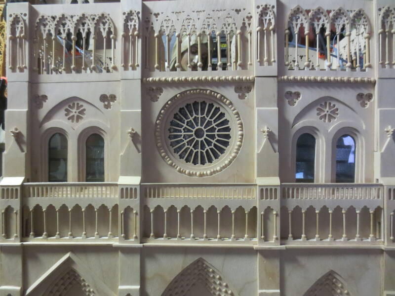 Na het bijna beëindigen van mijn eerste bouwwerk: de dom van Ulm (Duitsland) waar ik enkele malen naartoe ben geweest kwam een volgende uitdaging aan bod: de dom van Keulen, die ik ook al enkele keren bezocht. Doch het noodlot sloeg op 15 april 2019 toe in de Notre Dame van Parijs. Het dak werd volledig verwoest en enkele gewelven storten in. Dus kwam er een wending in planning van mijn modelbouw. Aan de hand van de vele foto’s die op het internet te vinden zijn, via een mooi geïllustreerd boek (La nuit blue)… en een papieren modelbouw zou ik aan de Notre Dame beginnen. Opnieuw een hele uitdaging. Want zonder effectieve plannen waar al de afmetingen op staan en waarmee de assemblage vlot verloopt, moet ik alles zelf tekenen. Op welke schaal? Met wat en hoe beginnen we eraan? Afgewerkt in juli 2023